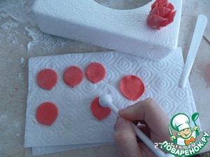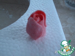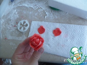 Да забыла сказать, когда роза готова, я ее снизу подрезаю ножницами, чтобы лучше приклеивать на торт. -