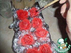 При этом кисточкой смазываю каждый лепесток водой (или водкой). -