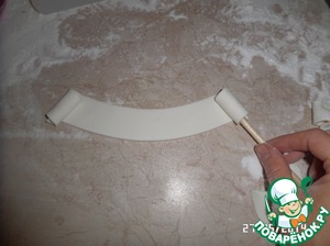 Вырезала из мастики полоску и закрутила кисточкой края. -