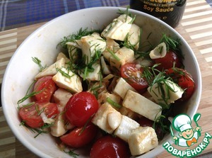 Еще раз готовим соус (смешиваем 3 ч. л. соевого соуса, 1 ч. л. оливкового масла и 1 ч. л. сока лимона).
