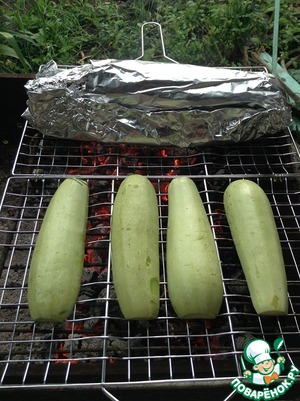 Только обратите внимание, что жар не должен быть очень сильным, отодвиньте часть углей в сторону, кабачки очень нежные и могут пригореть. -