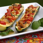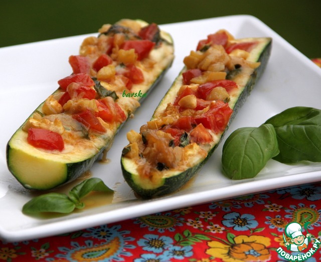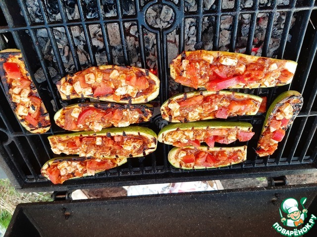 Рецепт «Кабачки с сыром и овощами на мангале»: