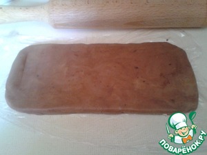 • Тесто разделить на 2 равные части. Растопить шоколад. Одну часть теста хорошенько перемешать с шоколадом.