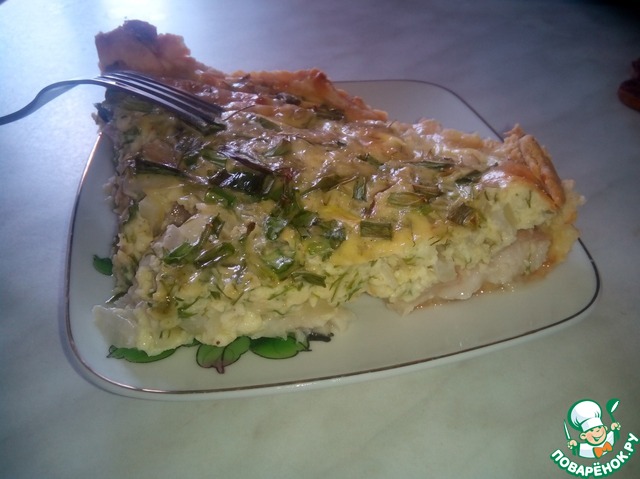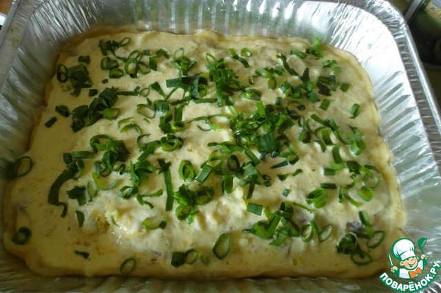 7. Посыпаем мелкопорезанным зеленым лучком и ставим в разогретую до 200 градусов духовку на 30-40 минут.