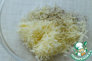 2. Сыр натереть на мелкой терке, добавить соль, перец.