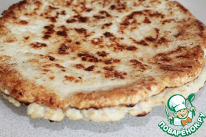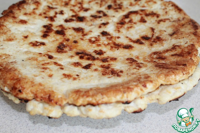Жарим 3 блина. Я делаю толстенькие блинчики, тесто ложкой выкладываю на сковороду и распределяю по ней