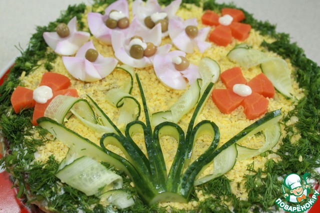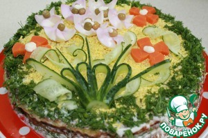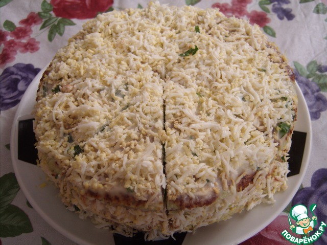 Вот только я намучалась с блинами из филе, ни как не могла их нормально пожарить, в итоге складывала пазлы из кусочков.
