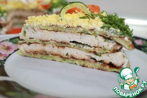 Предлагаю на суд уважаемых поварят рецепт закусочного кабачково-куриного тортика. Кабачковые блинчики, чесночек, свежая зелень ммммм... это очень вкусно и сытно))) Попробуйте