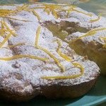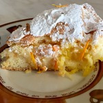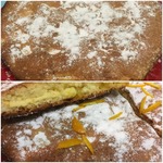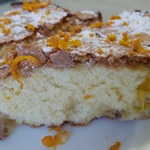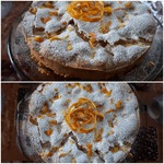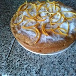 Пирог немного остудить в форме, а затем аккуратно извлечь и окончательно остудить на решетке. Затем посыпать сахарной пудрой и полосками цедры.
