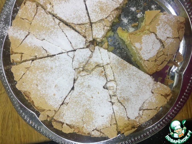 Разрезать пирог надо очень аккуратно, верхняя корочка очень хрупкая,