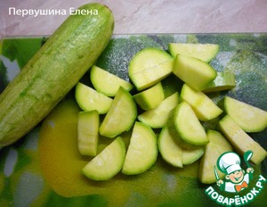 Кабачок помыть, так же нарезать полукольцами.