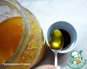 Отмеряем мед и и хорошенько растираем, чтоб мед полностью растворился. Лучше конечно использовать жидкий мед.