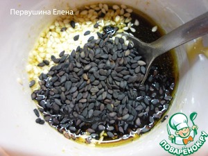 - Кунжут (с горкой. У меня 1 ч.л. белого и 1 ч.л. черного) — 2 ч. л.