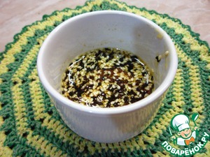 Пока тушится, делаем заправку: соевый соус наливаем в отдельную чашку.