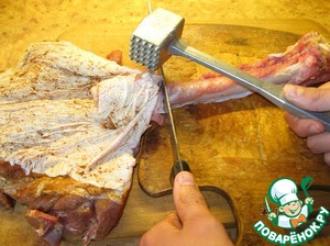 Отделить мясо со шкурой от кости