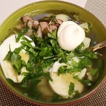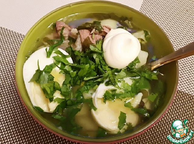 Прекрасное весеннее блюдо зеленый борщ, вот так мы хозяйки встречаем прекрасную весну, не только на улице, но и у себя на кухне. На огородах появляется зелень, идя по городу, мы встречаем бабушек с этой замечательной свежей зеленушкой, укроп, петрушка, щавель. Сразу хочется порадовать своих домочадцев вкусненьким первым блюдо. Также не стоит забывать, что щавель очень полезен, в нем содержится множество витаминов: Е, К, С, витамины группы В, бета-кератин, щавельную, пирогалловую, дубильную кислоту, эфирные масла. Минералы: фосфор, железо, магний, кальций и т. д. Так что готовим и наслаждаемся вкусным и полезным борщиком, приятного аппетита!