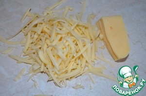 Включаем разогреваться духовку на 250-220град. Натираем на крупной (либо средней)терке сыр.