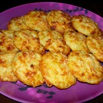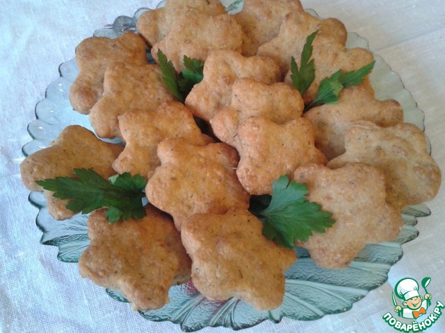 Вырезаем формочкой печенье и выкладываем его на противень, застеленный бумагой для выпечки. Поверхность печенья можно смазать белком и посыпать сыром, а можно просто оставить так, как есть. Ставим в горячую духовку на 10-20мин. (все зависит от мощности духовки).