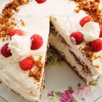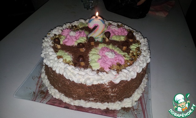 Форму (диаметр 20-22 см) смазать сливочным маслом и вылить тесто. Выпекать 25-30 минут при t 180 градусов. Остывший корж разрезать на две части и смазать кремом.