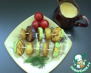 Вкусный и быстрый овощной шашлык с замечательным соусом понравится и взрослым и детям.
