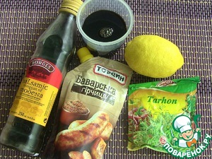 • Для маринада смешиваем соевый соус, бальзамик, сок 1 лимона, 2-3 ст. л. горчицы, приправы по вкусу, хорошо перемешать. Овощи порезать и перемешать с маринадом. Оставить на 20-30 минут, можно на ночь.