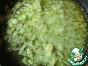 Лук мелко нарезаем. В сковороде растапливаем сливочное масло, добавляем лук и обжариваем.