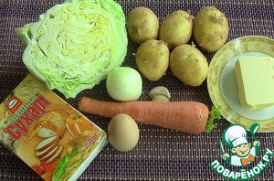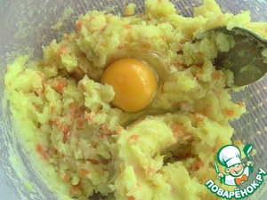 Когда картошка сварится, чистим от кожуры, готовим пюре, перемешиваем с обжаренными овощами. Добавляем яйцо, хорошо перемешать.