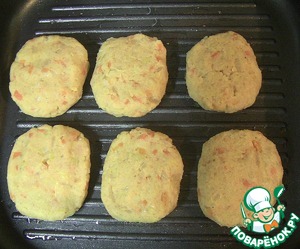 Через час формируем котлетки и обжариваем на сковороде гриль или обжариваем на гриле на природе. Долго обжаривать не надо, у нас овощи уже готовы.