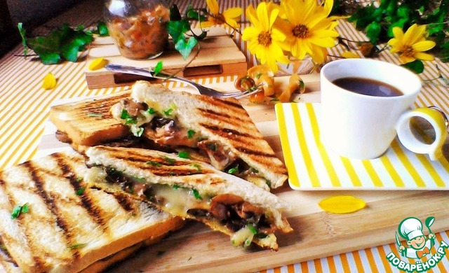 Рецепт «Горячие бутерброды с грибами и сыром на гриле»: