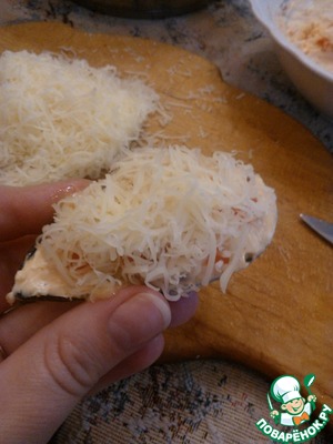 И запекаем в духовке. Я запекала на 200С 10 минут, и начинка растеклась, нужно следить, как только сыр расплавится, поставить под гриль на пару минут.