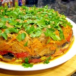 [+5]Я предварительно обжаривала все овощи, включая и картошку. В духовке держала 1,5 часа при 200*С (до готовности картошки). Запекала без крышки, как написано в рецепте. Блюдо получилось сочное, даже была подливка.