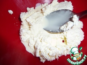 Готовим соус. Взять хорошую порцию домашнего творога (можно заменить любым творожным сыром, даже лучше, не нужно будет взбивать)