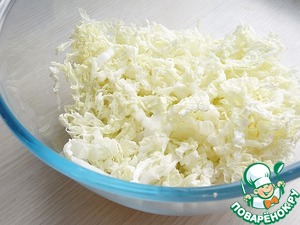 Нарезать соломкой пекинскую капусту.