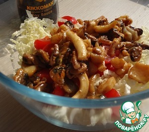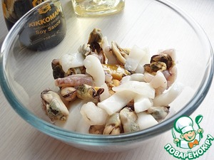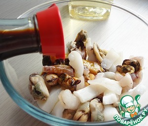 И соевым соусом. У меня соус ТМ Kikkoman. Перемешать.