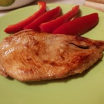 Промаринованную курицу обсушить бумажным полотенцем и обжарить на растительном масле на большом огне с обеих сторон, буквально по 1-2 минуте с каждой.