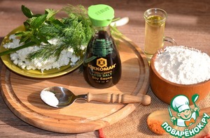 Необходимые продукты. Паратху будем делать с творогом с добавлением чеснока, зелени и соевого соуса.
