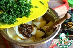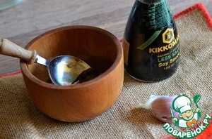 Соевый соус Kikkoman соединить с выдавленным через пресс чесноком.