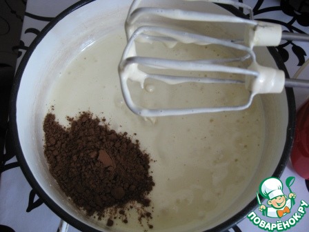 Тесто готовим так же как и на белый бисквит, только в конце добавляем какао -