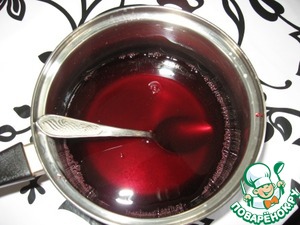 Для приготовления крема взбиваем мягкое сливочное масло и постепенно добавляем сгущенку. Для приготовления пропитки сок от растаявшей вишни смешиваем с водой, добавляем коньяк и сахар, должно получиться 400 мл.