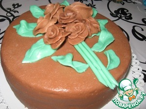 Украшаем тортик мастикой как подскажет фантазия. Я работала с мастикой первый раз, поэтому делала самые простые розочки-листочки. Вот что вышло. Готовые цветочки нужно подсушить хотя бы сутки, поэтому их нужно готовить заранее.