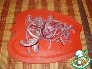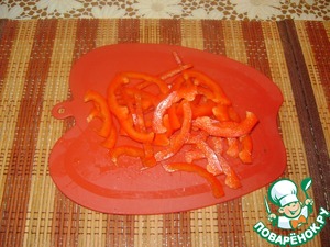 Куриное филе отварить, остудить, разобрать руками на небольшие кусочки.