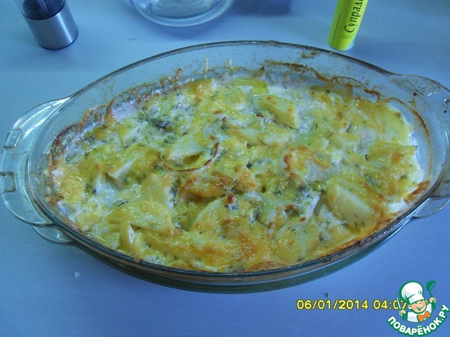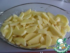 Нарезаем картофель, можно полукольцами или кольцами, зависит от величины.