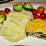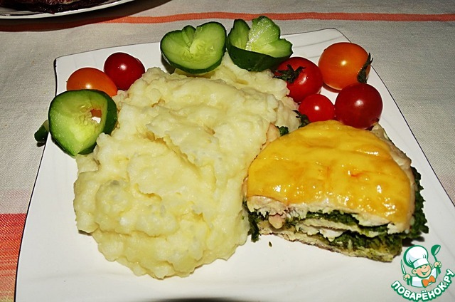 И самым верхним должно быть куриное филе, посыпать приправой. Запекать в духовке минут 20-30. За 5 минут до готовности посыпать тертым сыром поставить под гриль.