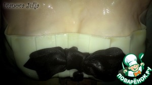 Последние штрихи – приклеить бантик и пуговички и их тоже покрыть ликёром, как и весь торт.