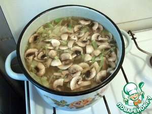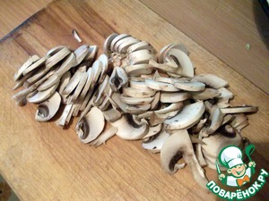 Режем грибы тонкими ломтиками.