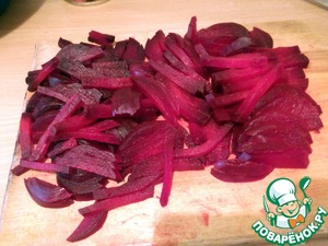 Чистим и режем соломкой вареную свеклу. -