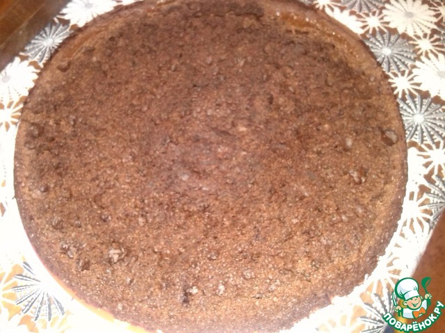 4. Готовый торт разрезаем на 2-3 коржа, предварительно дать немного остыть.