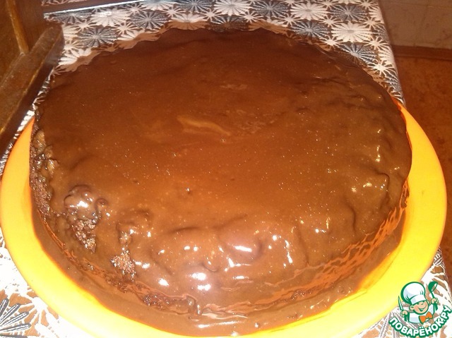 Быстро заливаем торт глазурью. Дать постоять при комнатной температуре до остывания и пару часов в холодильнике.