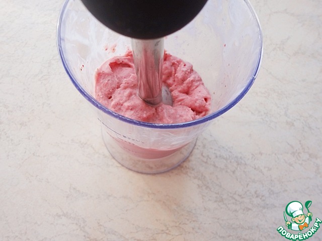 Измельчаем ягоды с кефиром до состояния пюре. Собственно, все... Время приготовления указала с учетом разморозки ягод. Оно весьма условно. Непосредственно сам процесс приготовления десерта - две-три минуты.