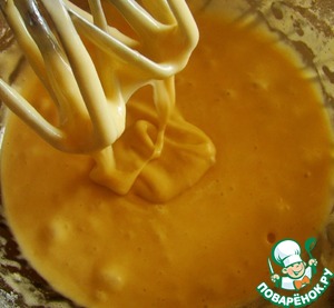 Яйца взбиваем с сахаром на большой скорости миксера до увеличения в объеме и полного растворения сахара.